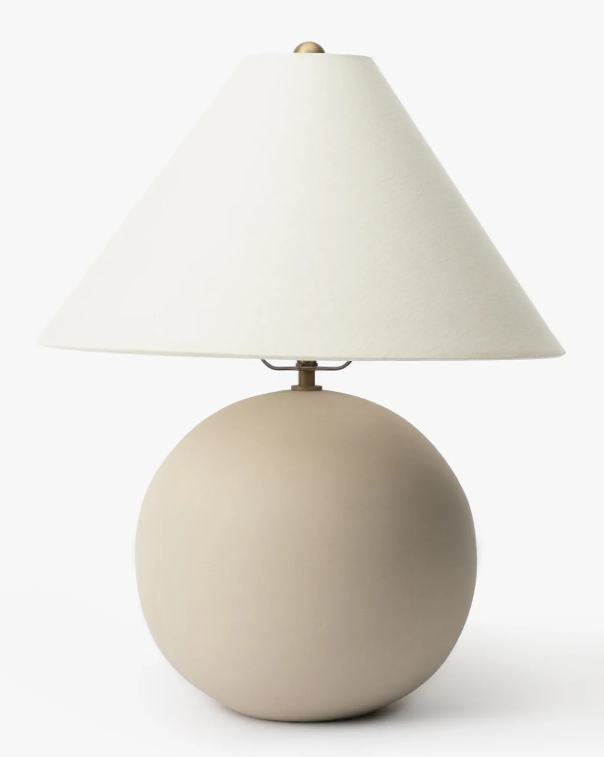 Merging geometry with traditional lamp design, we meticulously designed the Tess Ceramic Table Lamp. Earthenware was an obvious material choice — its natural texture and soft feel give way for a beautifulsand or brown finish that is rich and contrasting. With a deeply tapered shade that merges with its spherical ceramic base, the table lamp is balanced and interesting.