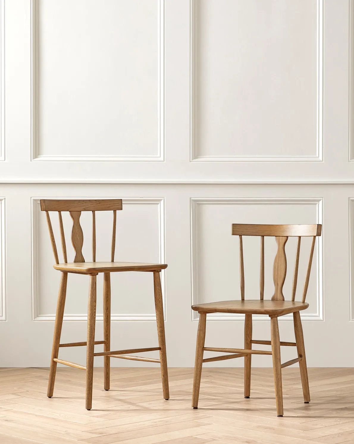 Featuring a spindle back design and clean lines, our Whittaker Stool combines classic charm with modern elegance for a look that complements a variety of dining space aesthetics. Crafted with high-quality solid oak, in your choice of a Honey Oak or Black Ash finish, it offers lasting durability and timeless appeal.